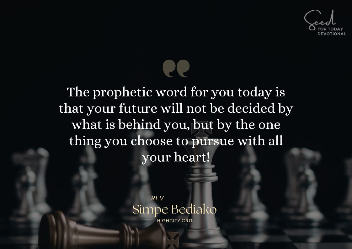 Heaven calls you forward. Destiny demands focus. When a man fixes his eyes on the mark and refuses to be distracted, strength rises within him to press on. The prophetic word for you today is that your future will not be decided by what is behind you, but by the one thing you choose to pursue with all your heart.
