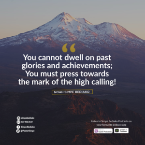Success and progress will not be handed over to you or me on a silver platter. You must press towards the mark of the high calling. You must press on and press hard. We must strive to forget the things that are behind and reach for the things that are before. We cannot dwell on past glories and achievements; we must press towards the mark of the high calling.