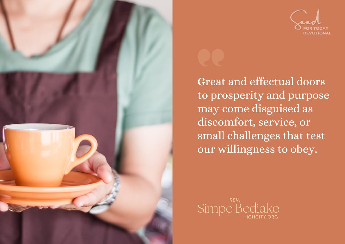 This reminds us that great and effectual doors to prosperity and purpose do not always appear grand, they may come disguised as moments of discomfort, unexpected calls to service, or small challenges that test our willingness to obey.