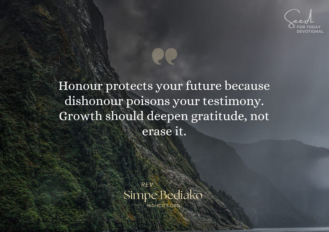 Honour protects your future because dishonour poisons your testimony. Growth should deepen gratitude, not erase it.