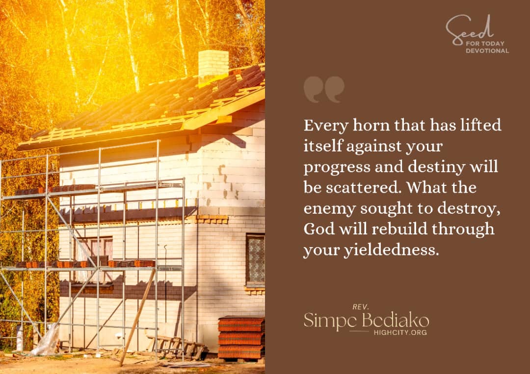 Child of God, this is not the time to sit silent or passive. It is time to stir the four carpenters: let prayer rise without ceasing, let praise resound, let the Word be spoken boldly, and let intercession ascend on behalf of families, churches, and nations. Every horn that has lifted itself against your progress and destiny will be scattered. What the enemy sought to destroy, God will rebuild through your yieldedness.