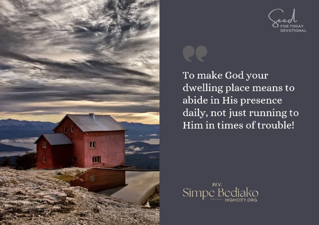 To make God your dwelling place means to abide in His presence daily, not just running to Him in times of trouble. It is to rest in His love, trust in His promises, and walk in constant fellowship with Him. It is a life centered on Him, where His Word guides your decisions, His Spirit strengthens your heart, and His peace governs your mind. In His presence, you are at home—safe, loved, and complete.