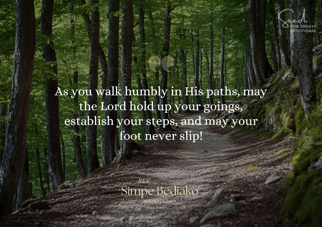 As you walk humbly in His paths, may the Lord hold up your goings, establish your steps, and may your foot never slip.