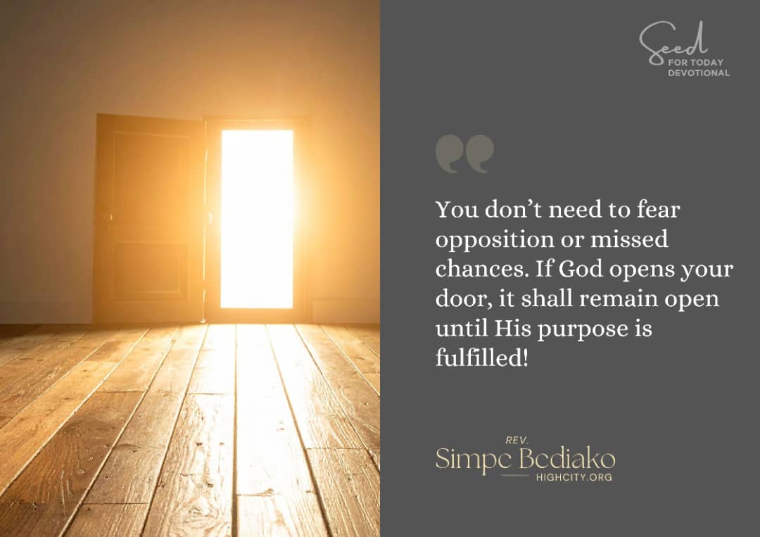 Therefore, you don’t need to fear opposition or missed chances. If He opens your door, it shall remain open until His purpose is fulfilled.