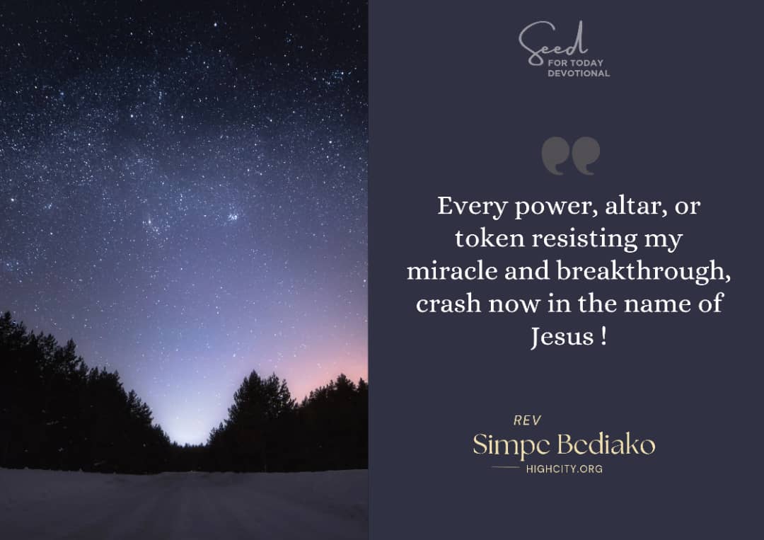 - I decree: Every power, altar, or token resisting my miracle and breakthrough – crash now! Break now! Be destroyed now, in the name of Jesus Christ!