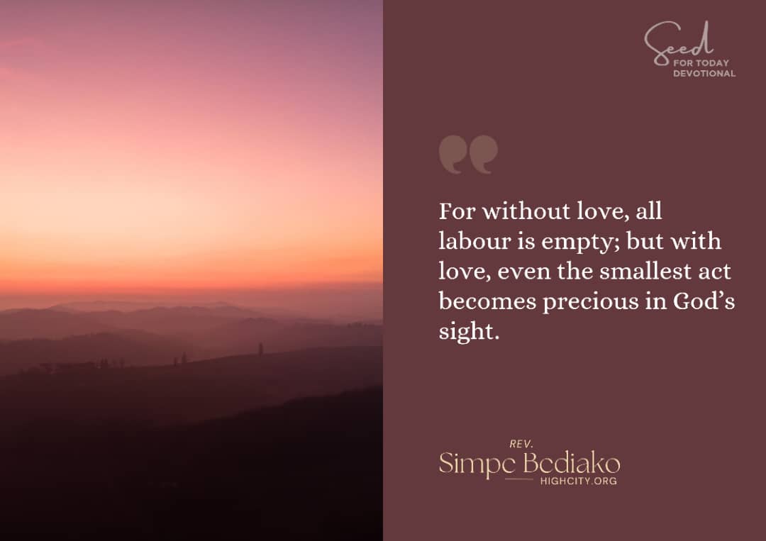 When love is restored, our service gains eternal value. For without love, all labour is empty; but with love, even the smallest act becomes precious in God’s sight.