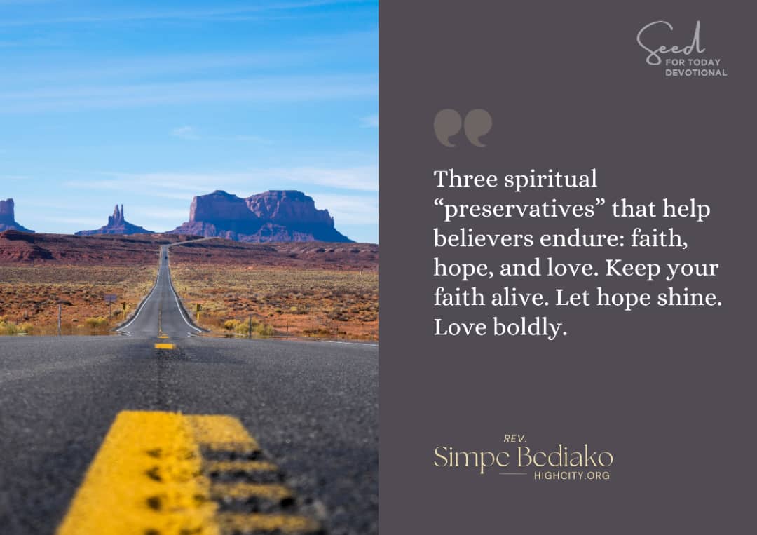 Not everyone who starts the race of faith finishes it. But there are three spiritual “preservatives” that help believers endure: faith, hope, and love.