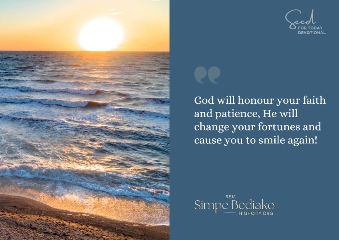 I have no idea what you may be facing, but I have good news for you. You don’t have to worry and don’t you be afraid! God will turn your mourning into dancing; He will lift your sorrow. God is about to do a new thing in your life because you have trusted Him. God will honour your faith and patience, He will change your fortunes and cause you to smile again!