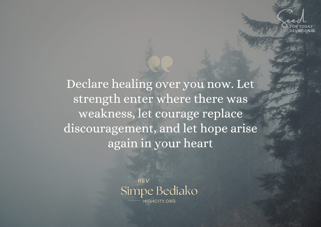 Every bruise from past disappointments, every wound from betrayal, rejection, or loss that has slowed your pace, I declare healing over you now. Let strength enter where there was weakness, let courage replace discouragement, and let hope arise again in your heart.