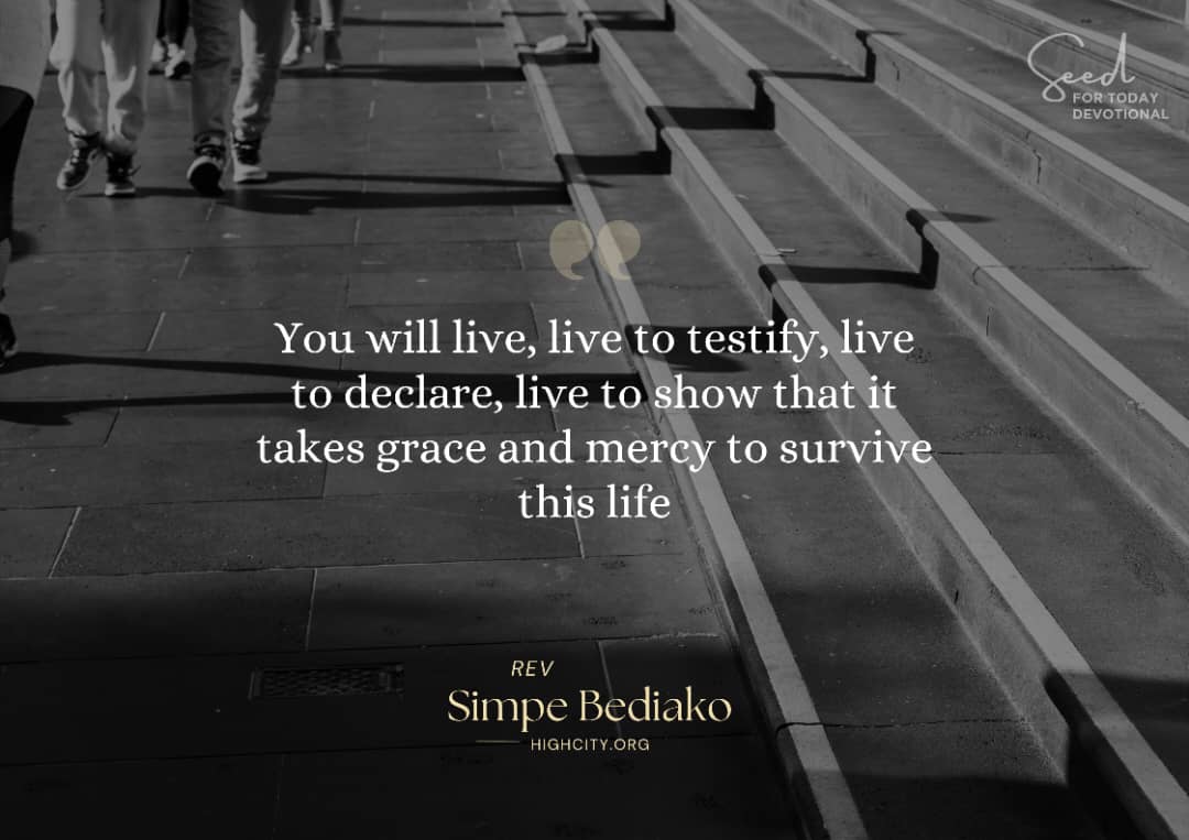Declare it with faith today: I shall not die! Not spiritually, not prematurely, not hopelessly. You will live, live to testify, live to declare, live to show that it takes grace and mercy to survive this life. Your story is not over. Your survival is proof that God still has a purpose for you.
